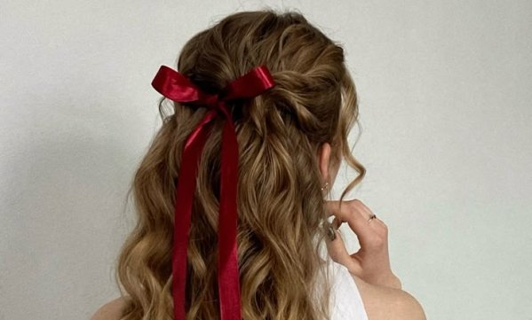 Романтичный и очень актуальный вариант. Лента, вплетённая в косу или завязанная бантом на низком хвосте, сразу добавляет образу мягкости и элегантности. Особенно эффектно смотрятся глубокие оттенки — бордо, изумруд, чёрный или молочный.