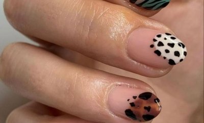 Трендово выглядят ногти в цвете, на которых есть частичное анималистическое изображение. А еще можно совместить несколько принтов меха на одном ногте.
