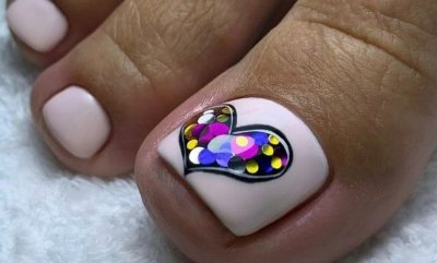 Если вы собираетесь на коррекцию педикюра, время подумать о романтическом дизайне ко Дню Валентина. Красивые ногти с сердечками и надписями будут красиво смотреться из-под капроновых колгот или носков.