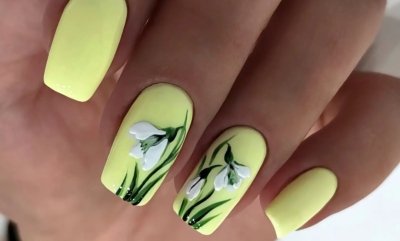 В начале весны стильно будут смотреться ногти светлых фиолетовых, розовых, коралловых, зеленых, голубых и оранжевых цветов. В тренде остается дизайн одного или двух ноготков. Например, на одном из ногтей можно нарисовать весенние цветы или листья, остальные пальчики будут однотонными, как цвет рисунка.