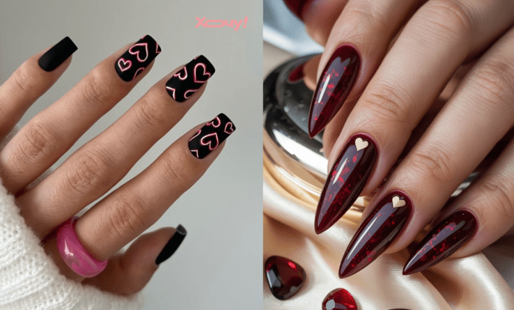 Маникюр на День Валентина 2025: как объединить темные оттенки с романтическим дизайном