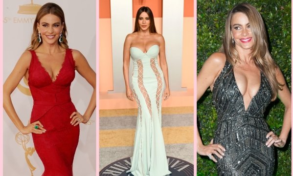 Больше всего София Вергара обожает крой по фигуре. Такие вещи отлично подчеркивают ее роскошную форму. Обожает артистка акцентировать внимание и на своем пышном декольте: вещи с глубокими вырезами, разрезами и декором в этой зоне — ее любимые.
