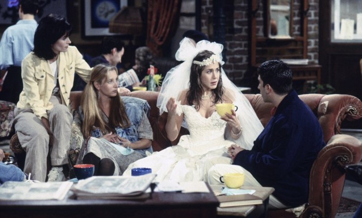 С первых минут "Друзей" мы видим Рэйчел, которая забегает в кафе Central Perk в роскошном белом платье невесты. Она только что сбежала из собственной свадьбы и с этого момента начнется ее новая история самостоятельной жизни в Нью-Йорке.