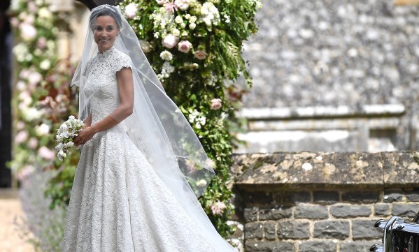 Во время подготовки к свадьбе Пиппа переживала немало стресса и даже заметно похудела, так что платье пришлось перешивать пять раз, чтобы оно идеально садилось на фигуру. Завершением элегантного образа стала изысканная фата, специально созданная для Пиппы.