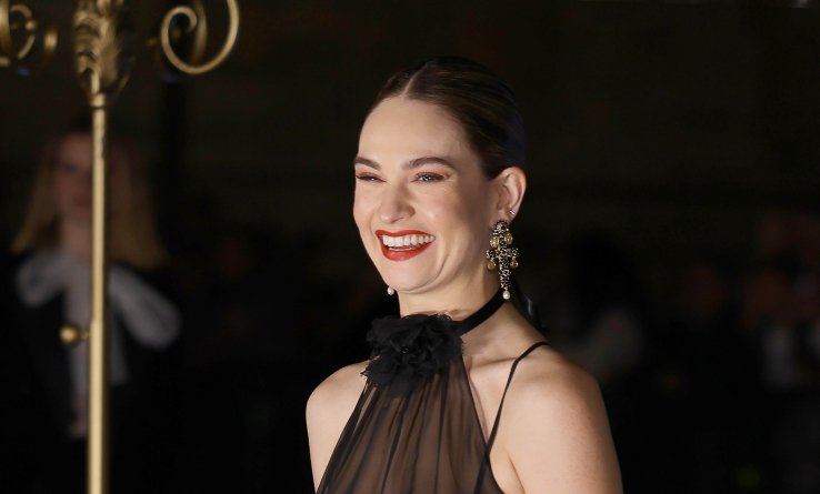 Ранее Лили Джеймс появилась на вечеринке в необычном платье, а на этот раз отдала предпочтение трендовым брюкам в классическом цвете. С чем она их сочетала - показываем далее.