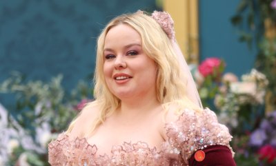 Никола примерила розовое приталенное платье от Rodarte, которое было украшено бисером, жемчугом и пайетками. Наряд имел опущенные бретельки, а его декольте было оформлено складками и кружевом. Последнее также было и на ободке, к которому крепилась фата. Завершали образ Кохлан высокие перчатки в модном цвете марсала, туфли, несколько украшений, а также макияж в розовых оттенках.