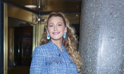 На этот раз на Блейк был роскошный твидовый ансамбль в синем цвете от Carolina Herrera. Он состоял из жакета на молнии и мини-юбки, которые были украшены бахромой из бусин. Дополнили образ модные туфли с шипами, черная сумочка и серьги в бирюзовом оттенке. Лайвли сделала прическу с волнами и красивый макияж.