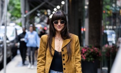 35-летнюю американскую актрису Дакоту Джонсон застали, когда она прогуливалась по улицам Нью-Йорка. Она создала яркий образ, используя базовые вещи.