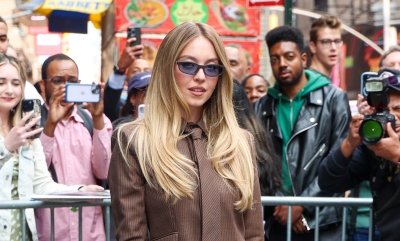 В этот день на Сидни было архивное платье-блейзер из осенней коллекции 2005 года от Jean Paul Gaultier. Наряд в темно-коричневом оттенке имел структурированные плечи и неравное количество карманов с обеих сторон. Дополнили образ галстук в тон, коричневая сумка с короткой ручкой и обувь на каблуках. На глазах у Суини были очки от солнца. Волосы звезды свободно спадали на плечи, а на лице был красивый макияж.