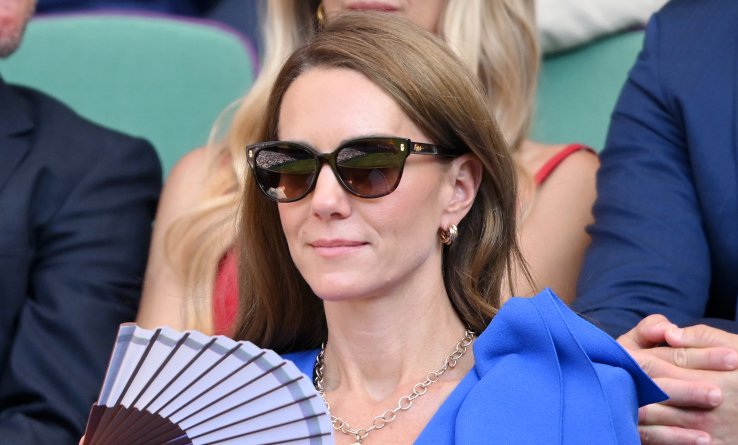 На днях Кейт Миддлтон посетила мужской финал Уимблдонского теннисного турнира. Она была одета в синее миди-платье с бантом, которое сочетала с туфлями на каблуках в оттенке капучино и украшениями.