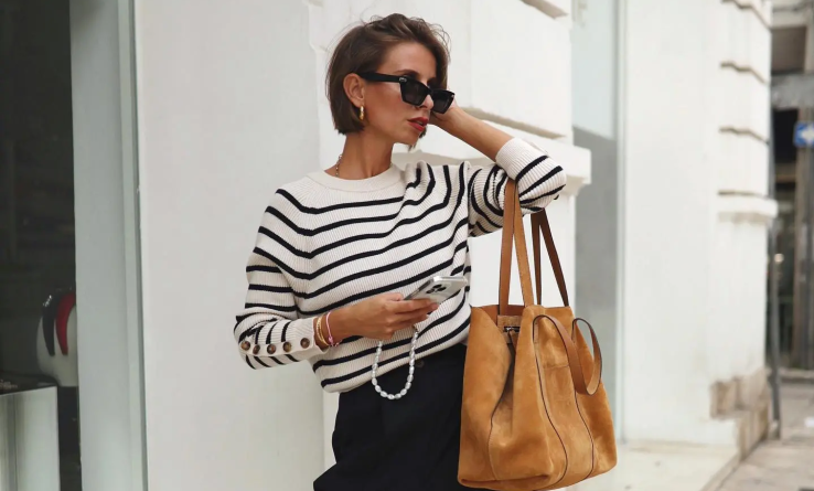 В 2025 году полосатая кофта станет не просто базой, но и очень горячим трендом. Горизонтальная, вертикальная, тонкая или широкая полоска здесь уже не так важно. Главное, чтобы был внятный контраст. Но мы рекомендуем выбирать кофточки в стиле француженок — свободный трикотаж, который можно одеть и на работу, и на свидание.