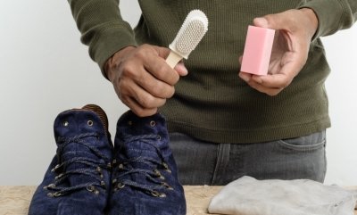Если вдруг не знаете, как появилось пятно, обработайте его смесью из нашатыря и крахмала (или мела). Нанесите кашицу на пятно, подержите 1-2 минуты и встряхните, а затем дайте поверхности высохнуть естественным путем. Остатки удалите щеточкой. Хранить замшевую обувь стоит в специальных ящиках, в сухом темном помещении. Тогда обувь не выгорит под солнечными лучами и будет дарить радость от ношения и комфорт.