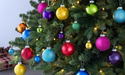 Модно украшать елку разными цветами игрушек. Глянцевые шарики и гирлянды добавляют богатства. Чем больше цветов, тем более праздничный эффект.