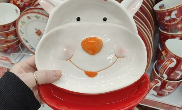 В моде — тарелки в форме елки, новогоднего шарика или снеговика. Такая посуда имеет праздничный вид и позитивные цвета. На столе может быть целый набор елочек: тарелка, доска, салфетница.