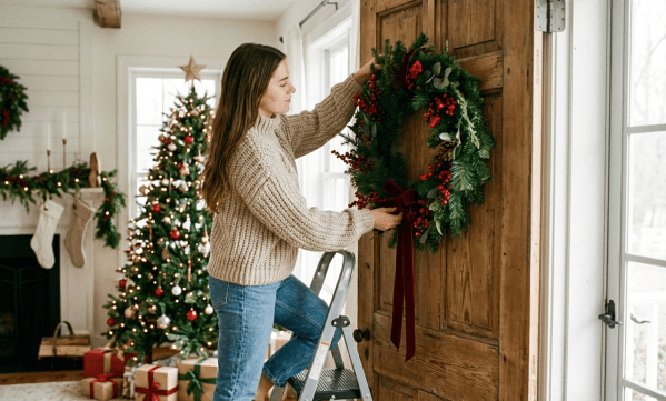 Праздничный венок на двери создает настроение еще до того, как вы зашли домой
