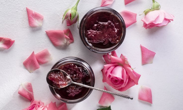 Розы. Они обладают ярко выраженным вкусом и используются в приготовлении вкусных коктейлей сиропах и варенье.