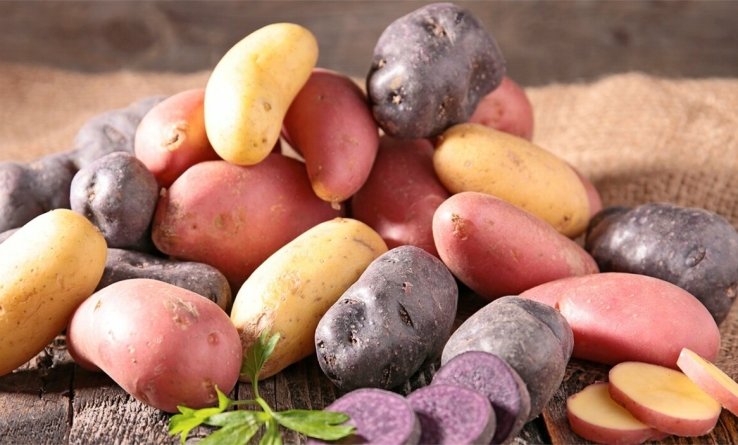 7. "Солоха". Картофеля фиолетового цвета, имеют большое количество антиоксидантов. Среднеспелый сорт, имеет легкий ореховый вкус и считается настоящим деликатесом среди сортов.