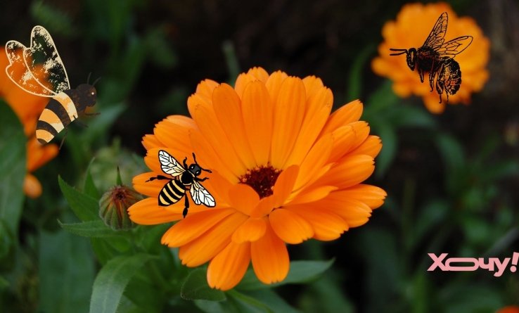 Календула благодаря яркости является красивым украшением сада и клумбы и привлекает бабочек и пчел.