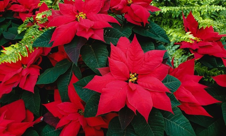 Это растение – общеизвестный рождественский символ благодаря своему яркому виду. Она цветет мелкими белыми цветами, но настоящая роскошь – цветные листья, которые появляются перед соцветиями. Наиболее популярны красные пуансетии, однако существуют сорта с белыми, бежевыми и розовыми прицветниками. Чтобы запустить новый цикл после цветения, нужно дать цветку специфический уход.