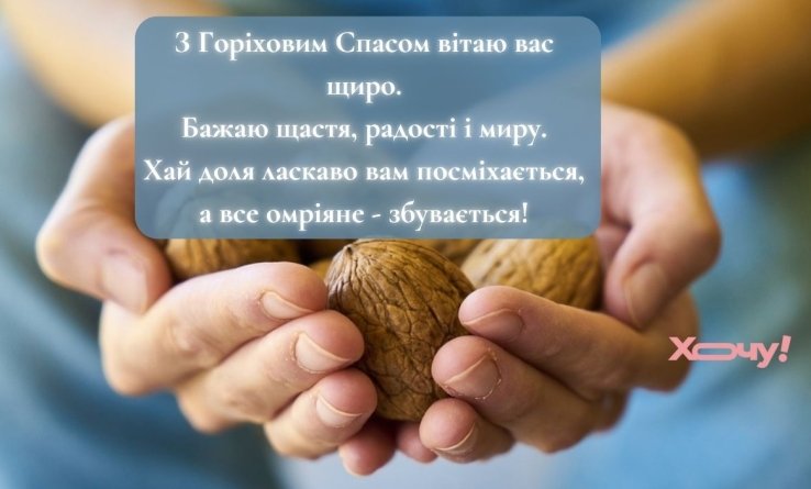 Хлібний Спас, Горіховий Спас – добре і світле свято літнього неба, запашного хліба, чистої води і багатого врожаю. Нехай ваше здоров'я буде міцно-горіховим, а життя – хлібосольним. Бажаємо снопів удач, кошиків успіхів, мішків радості і повні засіки добробуту!