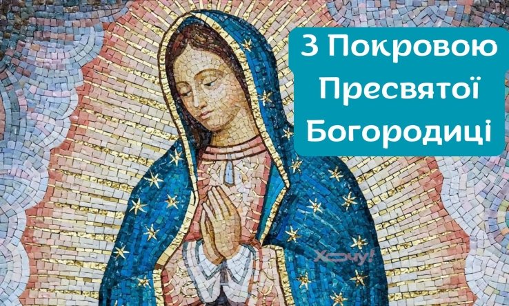 Вітаю з Покровом Пресвятої Богородиці та від душі бажаю щасливого, довгого, благодатного життя під покровом Пресвятої Діви. Нехай кожен день дарує тільки світлі думки і добрі справи, нехай Богородиця пошле тобі і всій родині здоров'я міцного, достатку, ладу і світу.