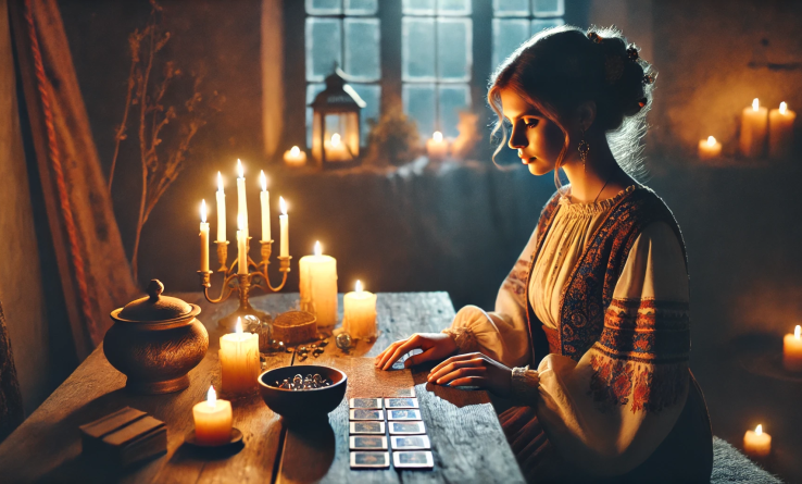 Для этого способа используются специальные карточки, которых должно быть 40. Нужно сформулировать волнующий вопрос, перемешать карты, выбрать три и расшифровать их значение. Например, можно спросить, когда встретится настоящая любовь.