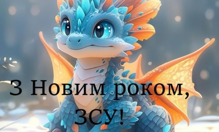 Вітаємо Вас з Новим 2024 роком та Різдвяними святами! Нехай Новий рік якомога скоріше принесе усім нам Перемогу та мир, аби наша вільна та незламна Україна розквітла ще яскравіше, стала ще багатшою та міцнішою, ніж до війни! Віримо в Україну та в ЗСУ!