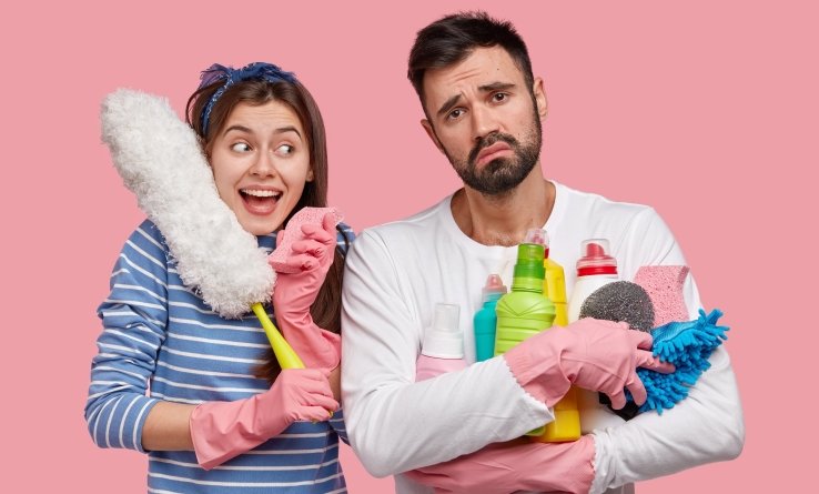 ▶ Распределите работу. Например, пусть дети вытирают пыль и моют посуду, а муж снимает шторы, отодвигает мебель и моет пол.