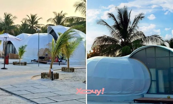 На этом экзотическом острове море светится ночью, а отель выглядит как кокон