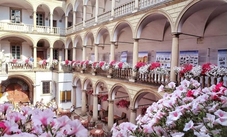 Рядом с площадью Рынок находится уютный двор с рестораном внутри. Это уникальный дворик, выполненный в стиле итальянского Ренессанса с трехъярусными открытыми галереями.