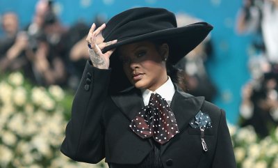 На культовом мероприятии в Нью-Йорке Рианна появилась последней, как настоящая королева вечера. Ее появление стало апогеем шоу, ведь певица выбрала провокационный look в стиле современной классики — короткий жакет от Marc Jacobs, обжатое бюстье, полосатую юбку с разрезом до бедра и объемный турнюр, напоминавший еще один пиджак. Дополнили образ двухцветные туфли, шляпу и платок в горошек.