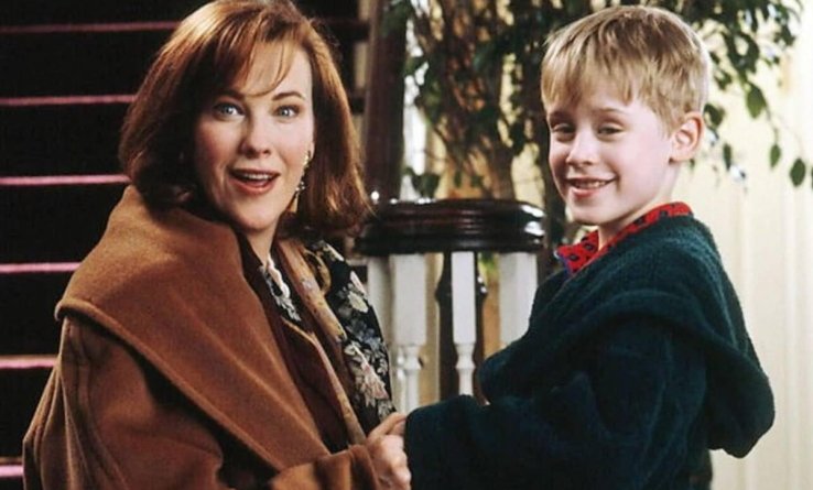 Кэтрин О'Хара и Маколей Калкин. Кадр из фильма "Один дома"