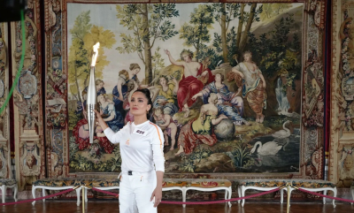 На своей странице в Instagram Сальма продемонстрировала момент пронесения символического огня в стенах Версаля. Как видно из кадров, на Гаек был одет специальный костюм для факелоносцев Олимпийского огня.