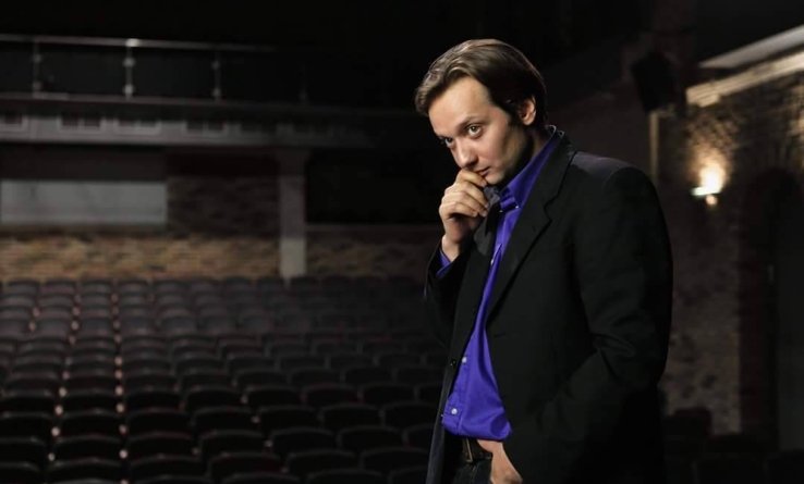 Марк Дробот на сцене театра. Фото: facebook.com/molodyytheatre