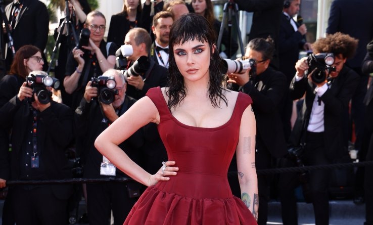 Такой лаконичный наряд Кара, скорее всего, выбрала не случайно - он не должен был отвлекать внимание от ее новых стрижки и цвета волос. Теперь они темные, достигают чуть ниже плеч, а спереди у девушки рваная челка.