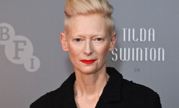Для своего появления на публике Суинтон выбрала элегантный total black образ. Она нарядилась в твидовый костюм, состоящий из двубортного жакета с серебряными пуговицами и широких брюк. Дополняли образ черные туфли и кольцо с камнями. Свои короткие светлые волосы актриса уложила, зачесав назад, а также сделала макияж со своей любимой красной помадой.