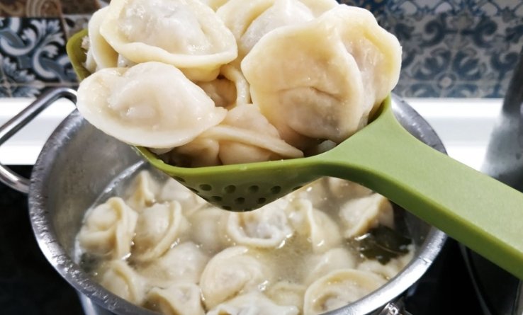 После этого пельмени чаще всего вылавливают из кастрюли шумовкой. Зато предлагаем попытаться отбросить пельмени на дуршлаг.
