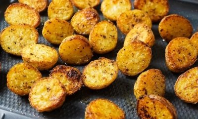 • Благодаря предварительному отвариванию, на картофеле образуется румяная и хрустящая корочка.