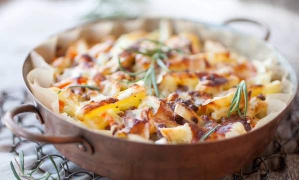 Лучше всего использовать соус бешамель. Именно этот белый соус предназначен для запекания. Он подчеркнет все ингредиенты и насытит их нежным сливочным вкусом.