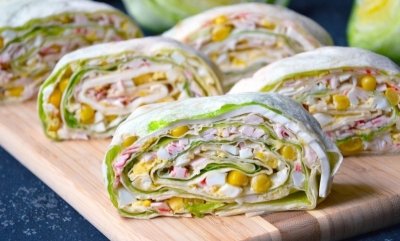 Секрет в том, чтобы взять почти все ингредиенты этого салата и завернуть их в лаваш. Такая закуска получается гораздо более интересная и легкая. Рецептом разделились на портале ivona.ua.