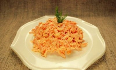 Далее добавляем в миску к моркови натертые плавленые сырки.