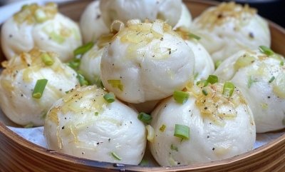 Формируем из нее небольшие шарики. Выкладываем на тарелку. Поливаем чесночным маслом.