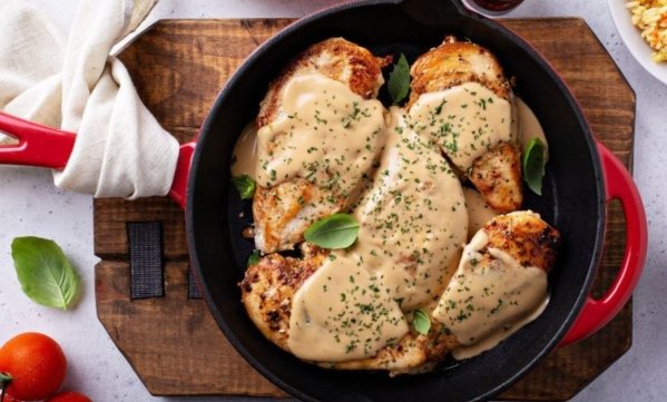Секрет особого вкуса этого мяса – в нежном сырном соусе. К такой курочке будет подходить любой гарнир. Рецептом поделилась кулинарная блоггерша под ником mariiam_foodblog.