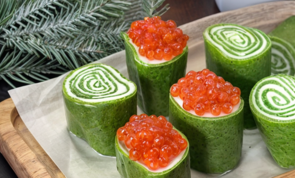 На Новый год часто делают закуски с икрой. Однако просто намазать ее на бутерброды – очень банально. Мы рассказывали, как подать этот продукт очень красиво – с блинами. Теперь поделимся идеей еще одной яркой закуски.