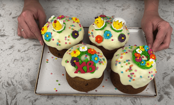 Остывшие паски украшаем глазурь. Также мы рассказывали, как приготовить белковую глазурь.