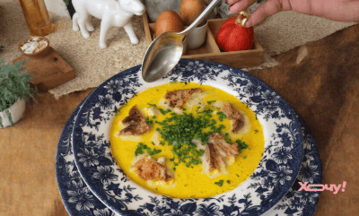Подавать такой суп вкуснее всего с сухариками. А на десерт приготовьте нежную яблочную шарлотку.