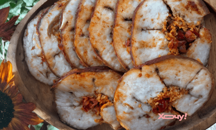 После ночи в холоде рулет можно будет тонко порезать. Прекрасно есть его прямо с ломтиком хлеба. Также мы рассказывали, как вкусно приготовить мелкий картофель.