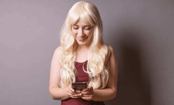 Девушка улыбается, читая что-то из телефона. Фото: canva.