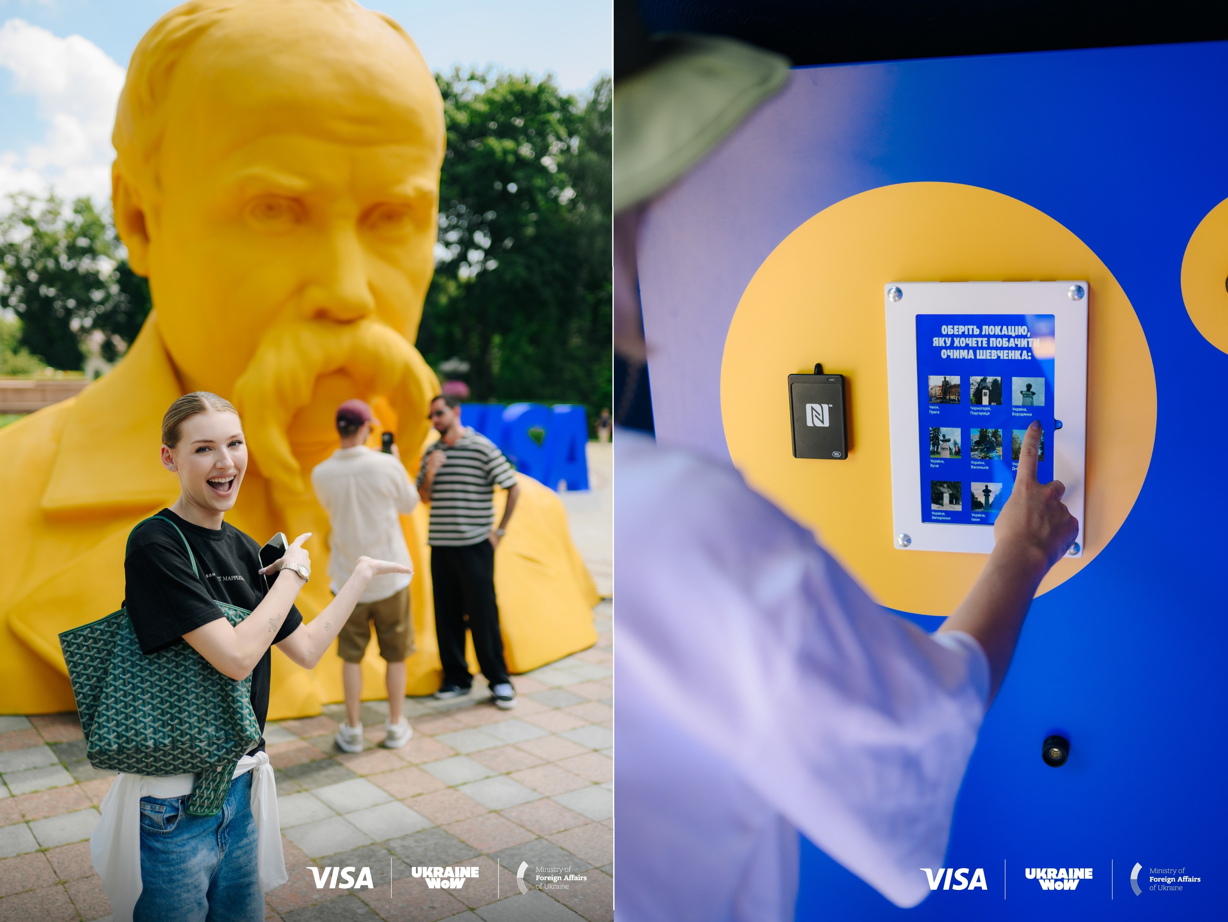 Во вторник, 5 августа, в центре Киева установили 5-метровый бюст Тараса Шевченко. Внутри интерактивной инсталляции размещены глазки, благодаря которым можно попасть в 80 локаций по всему миру, где установлены памятники Шевченко, и посмотреть вокруг его взглядом.