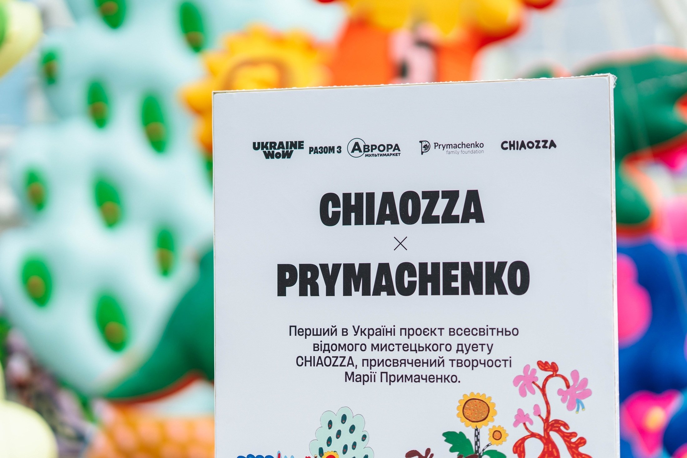 Художественный дуэт из Нью-Йорка CHIAOZZA представляет свой первый проект в Украине — инсталляцию, вдохновленную творчеством Марии Примаченко. Семь пневматических скульптур по мотивам работ выдающейся украинской художницы с 8 по 21 сентября включительно можно увидеть на Контрактовой площади в Киеве, затем на выставке-посвящении Украине Ukraine WOW, а после они отправятся в США.